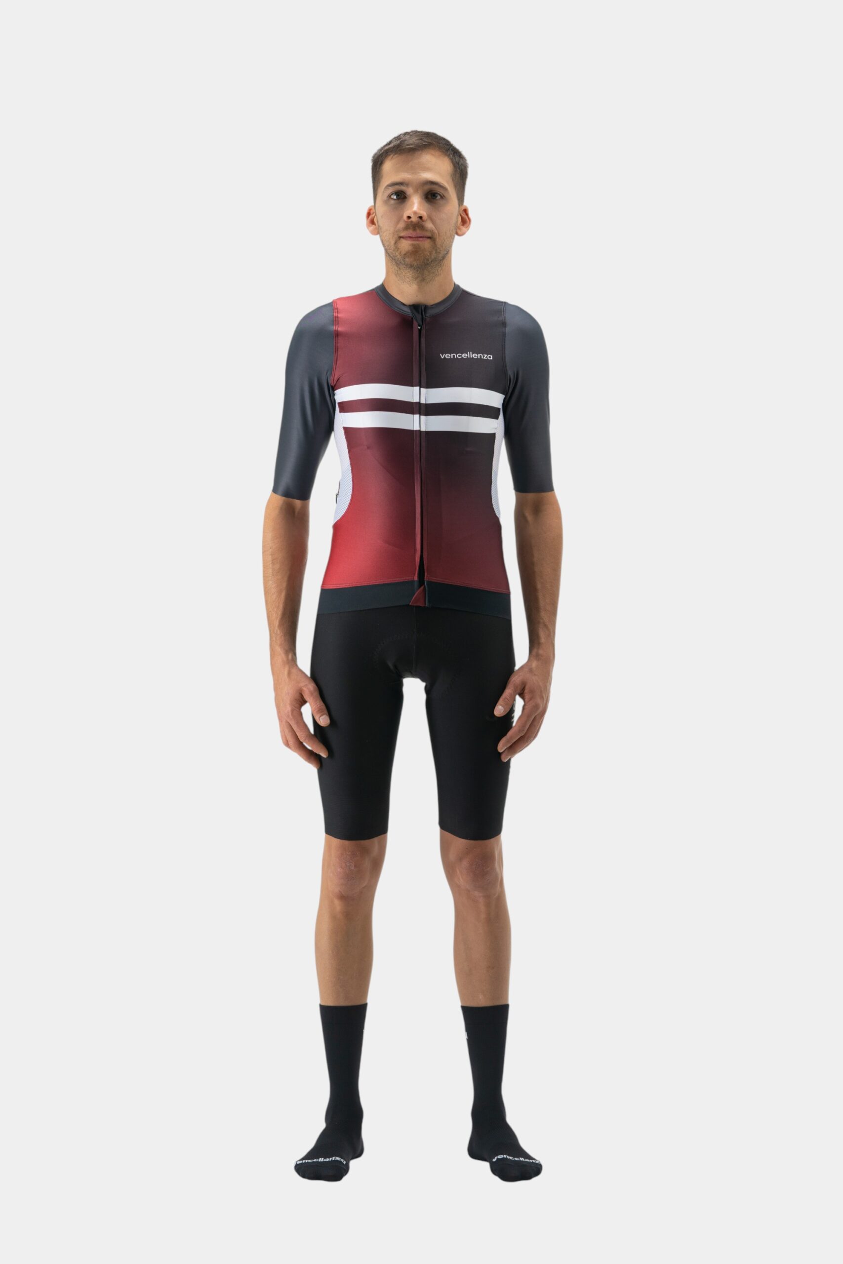 La camiseta V-II es versatilidad. Esta es una prenda creada para obtener una compresión ligera con el fin de tener la aerodinámica ideal en los momentos más intensos. Su diseño cuenta con un panel de malla altamente transpirable que permite regular la temperatura corporal consiguiendo así una prenda fresca y cómoda. La camiseta V-II está diseñada y elaborada para ser usada en condiciones climáticas cálidas y frías.